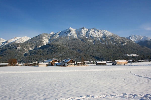 Das Loipennetz Mittenwald-Krün-Klais bietet umfangreiche Möglichkeiten für Langläufer.