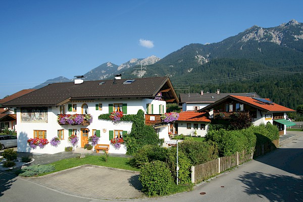 Unser familiär geführtes Gästehaus liegt zwischen Garmisch-Partenkirchen und Mittenwald im wunderschönen oberen Isartal auf 900m Höhe. Unser Panorama erstreckt sich vom Karwendel über den Wetterstein bis hin zur Zugspitze.